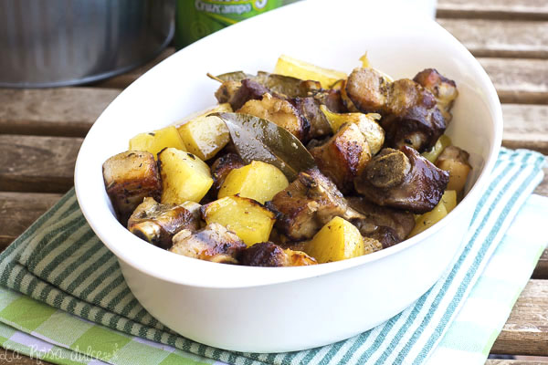 - Cortamos as costelas de modo a ficarem todas separadas e temperamos com sal, pimenta e alecrim. Juntamos os dentes de alho esmagados e o louro. Misturamos bem e colocamos numa assadeira. Juntamos as batatas cortadas em quartos ou cubos.